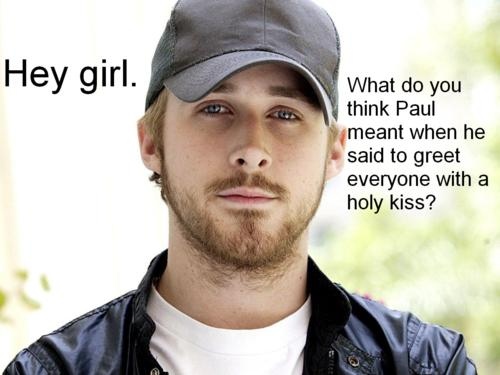 V12 greet one one other with a holy kiss – reminds me in cultures where one, two or some places three alternate kisses on the cheeks. Though I believe Paul is saying here that when we greet each other do it like you mean it – not just a superficial ‘hi how are you’ and then walk on by, but give yiur undivided attention to whom you greet – whether a meaningful handshake, hug or kiss do it in such away with honour and respect showing you are REALLY interested!